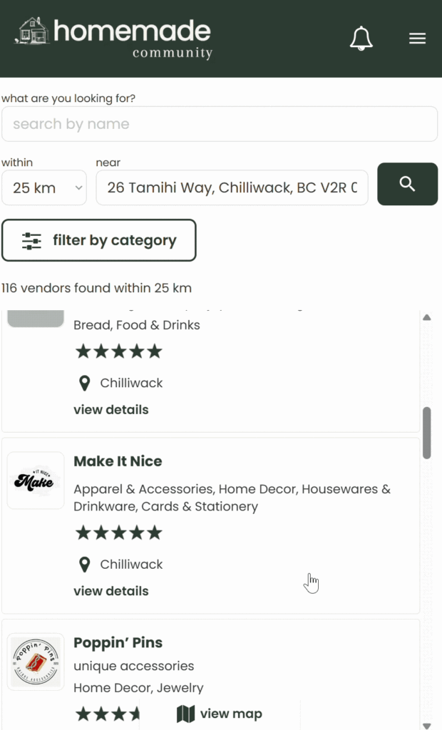 For us, the problem we’re addressing is vendor visibility: a vendor profile page and a location-based map search.